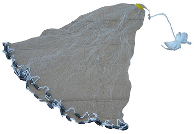 Este tipo de tarrafa quando lançada corretamente, abrirá e aterrisará na superficie da água com uma forma...